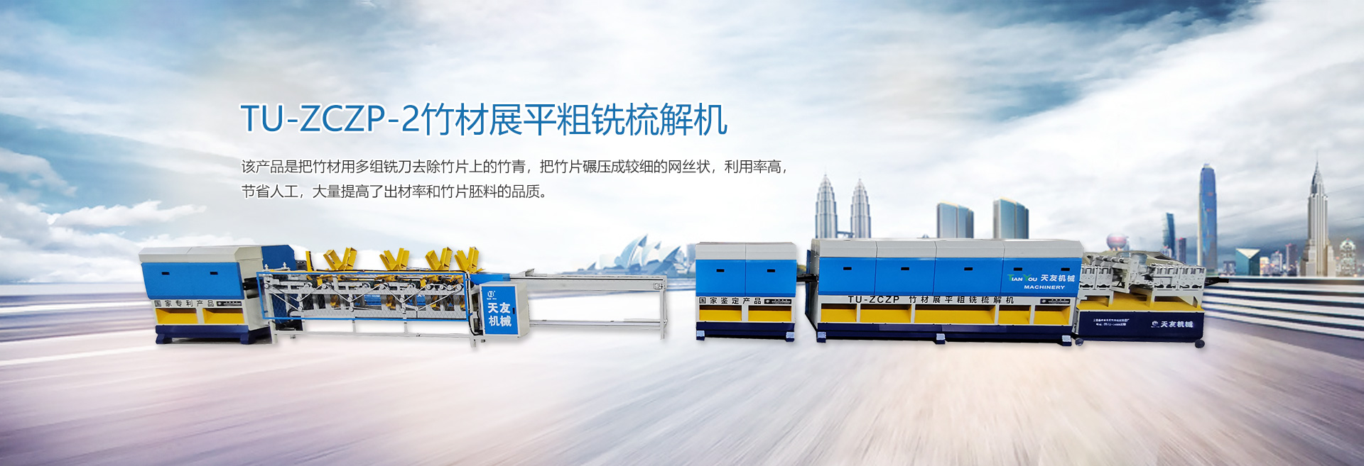本廠生產(chǎn)的“天友”牌竹木兩大系列機(jī)械產(chǎn)品,品種齊全,包括(竹木機(jī)械、重竹設(shè)備、竹筷成套機(jī)械、牙簽成套機(jī)械、刨篾機(jī)、包裝機(jī)、竹地板成套設(shè)備、竹涼席成套設(shè)備、砂光機(jī)、破竹機(jī)、拉絲機(jī)、精刨機(jī)、帶節(jié)雙生筷、天削筷機(jī)械等) ,結(jié)構(gòu)新穎,質(zhì)量上乘,以完善的售后服務(wù)體系深受客戶的好評(píng)。